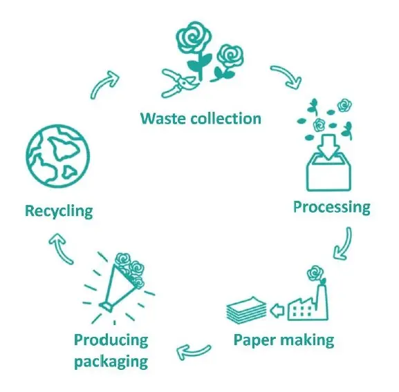 Bij FlowerPaper vormen innovatie en circulariteit één geheel. We sluiten de materiaal kringloop: bloemenresten worden een grondstof, en krijgen een tweede leven in FlowerPaper.